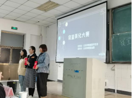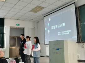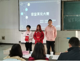 在东区阶教203开展“装扮室界,点亮生活”寝室美化设计大赛。院团委书记邢维迢到场,参赛选手及部分观众到场参加。