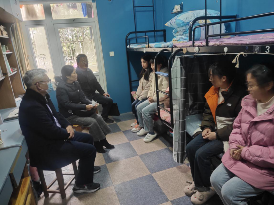 院领导老师深入到每一个学生宿舍,与学生进行面对面的交流,询问寒假期间的感受,返校后的适应问题等,尤其关心建档立卡学生、学业就业困难学生以及家庭受疫情影响等学生。在走访低年级学生宿舍时,领导老师们关心新学期开学后学生的适应度问题,给予学生学业和生活上的指导和建议;在走访毕业班学生宿舍时,重点关心毕业班学生考研就业情况,鼓励学生要关注考研就业动态,做好考研复试和求职准备。