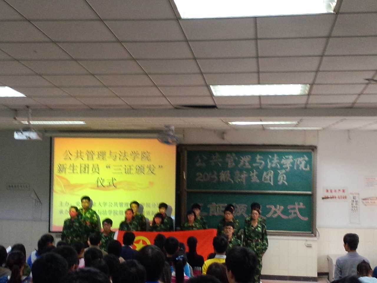 在阶教104举办了13级新生“三证颁发”仪式。此次活动邀请了院学生工作负责人、团委工作负责人以及13级新生辅导员等相关老师。