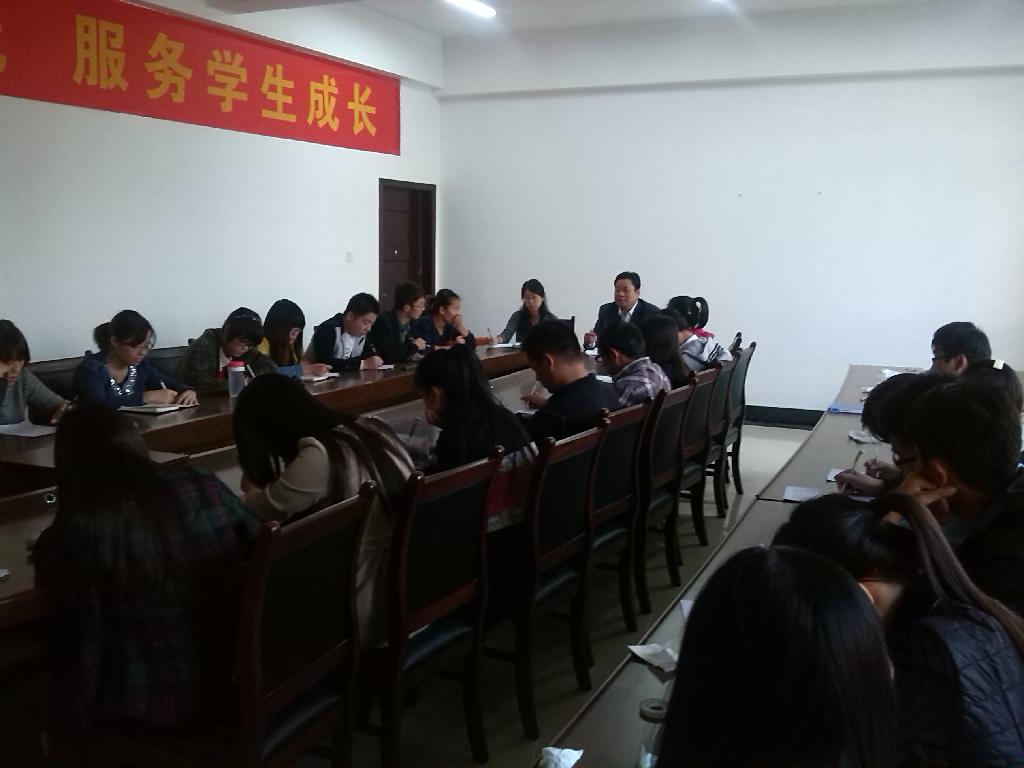 在新大活201召开了院团委学生会换届工作交流会。此次会议邀请了院党委副书记、副院长陈庆林莅临指导,由团委书记王菁主持,14、15届团委学生会主要学生干部参与此次会议。