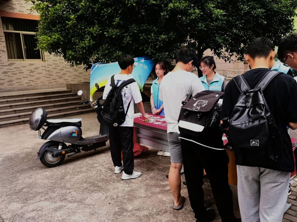 活动场景设置完毕,活动正式开始,随之而来的绵绵细雨,没能阻挡实践队员的志愿之心,更阻挡不了工大学子求知热情。在活动过程中,红色的横幅一边是积极宣讲提问的志愿队员,一边是络绎不绝的求知学子,双方相互配合,推进了结核防治知识的广泛传播。同时,实践队充分利用互联网沟通大众的功能,建立“健康中国”结核病防治“群聊”,通过趣味问答及横幅签字站点向大家推广宣传,为后期结核病防治线上知识竞赛及结核病防治相关知识的推广打下良好基础。