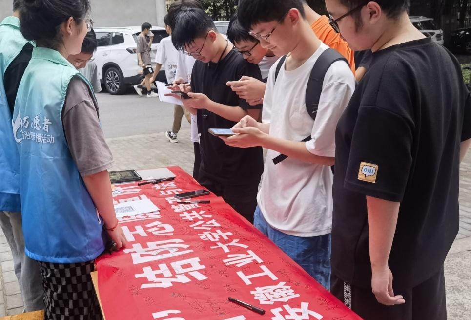 图为参与学子进行横幅签字并扫码加入“结防”群聊